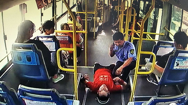 8月2日,市公交公司駕駛員王強像往常一樣,駕駛著6路公交車行駛在線路上,當車行駛到天貿(mào)城站時,一男子突然倒在車內(nèi),王強見狀立即將車緩慢??吭谡九婆?,向暈倒男子方向跑去,一邊安撫他防止其睡著,一邊撥打120急救電話。這就出現(xiàn)了文章開頭的一幕。